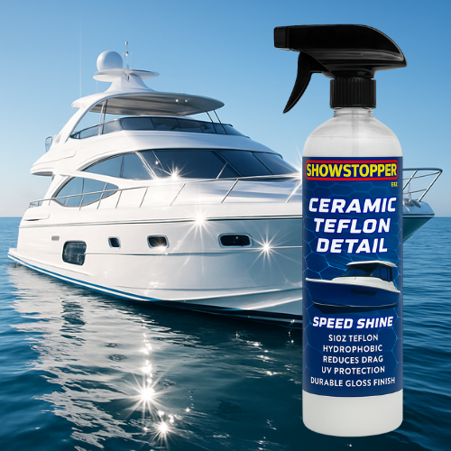 Speed Shine Teflon Ceramic Spray delivers professional marine detailer-quality protection with competitive racing advantage. The 15% SiO2 formula outperforms standard marine products while the ultra-slick Teflon-ceramic hybrid reduces hull friction for measurable speed improvements. Perfect for racing yachts, cruisers, powerboats, and personal watercraft. Experience the ultimate in boat care – where protection meets performance.