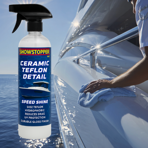Experience the ultimate in boat care with Speed Shine Teflon Ceramic Spray. This revolutionary formula delivers superior shine and long-lasting protection with quick and easy application. Designed to be antistatic, super hydrophobic, and ultra-slick, Speed Shine ensures your boat stands out with a stunning finish while providing measurable performance advantages for racing and cruising.
